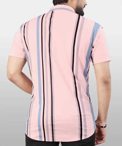 Classic Polyester Spandex Striped Casual Shirts for Men’s
